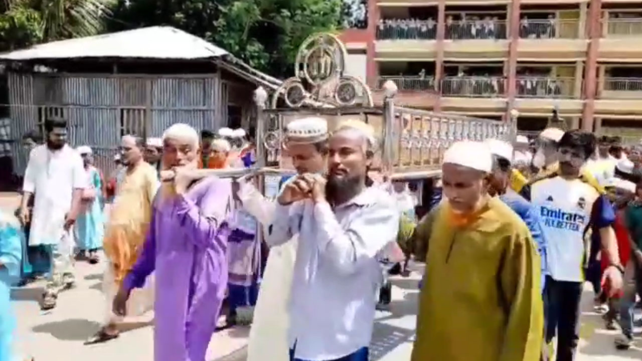 এদিকে মঙ্গলবার সকালে বরিশালের মেহেন্দিগঞ্জ উপজেলার চানপুর ইউনিয়নে মোস্তফা কামাল মাধ্যমিক বিদ্যালয় মাঠে সামিউলের জানাজা নামাজ অনুষ্ঠিত হয়। নামাজের আগে ছেলের জন্য দোয়া চাইতে গিয়ে কান্নায় ভেঙে পরেন সন্তান হারা পিতা রেজাউল করিম। জানাজা নামাজ শেষে সামিউলের মরদেহ নানা বাড়ির পারিবারিক গোরস্থানে দাফন করা হয়।
