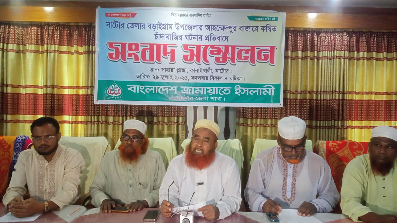 এদিকে জমি জমার দ্বন্দ্ব হলেও ঘটনাকে ভিন্নখাতে প্রবাহিত করতে চাঁদাবাজির মামলা ও বিভিন্ন গণমাধ্যমে জামায়াতকে হাইলাইট করে সংবাদ প্রচারের পর সংবাদ সম্মেলন করেছে বাংলাদেশ জামাতে ইসলামী নাটোর জেলা শাখা।
