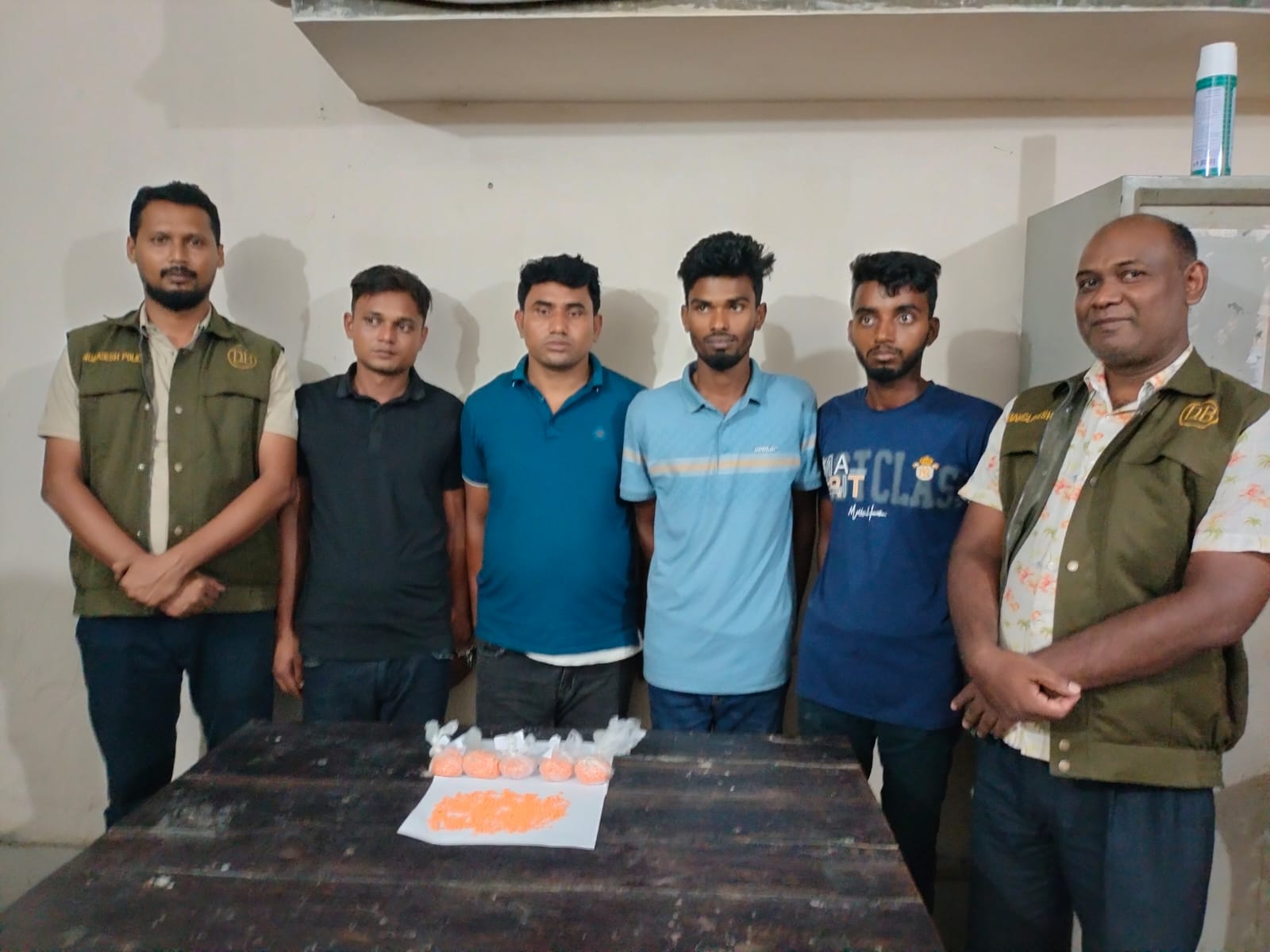 ডিবি পুলিশের উপ-পরিদর্শক (এসআই) নবিউল ইসলাম জানান, কক্সবাজার থেকে মাদকের একটি বিশাল চালান আসছে, এমন এমন তথ্য জানতে পেরে জেলা ডিবি পুলিশের ওসি মামুন অর রশীদের নেতৃত্বে একটি টিম রাণীশংকৈল থানাধীন নেকমরদ-কাতিহারগামী সড়কে চেকপোষ্ট বসায়। এসময় তিন যুবককে চ্যালেঞ্জ করে ডিবি পুলিশ। তাদের প্রত্যেকের কাছে একটি করে মোট তিনটি ইয়াবার পটলা পায়। পরে তাদের আরও জিজ্ঞাসাবাদ করলে তারা পায়ুপথের মাধ্যমে পেটে আরও ইয়াবা বহন করছে বলে জানায়। পরবর্তীতে তাদের পেট থেকে আরও তিনটি ইয়াবার পটলাসহ মোট ৬টি পটলায় মোট ৩১শ পিচ ইয়াবা উদ্ধার করা হয়।