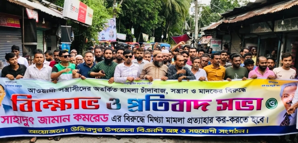বরিশালের উজিরপুরে আওয়ামী সন্ত্রাসীদের অতর্কিত হামলা, চাঁদাবাজী, মাদকসহ উপজেলা শ্রমিক দলের সাধারণ সম্পাদক শাহাদুজ্জামানের বিরুদ্ধে মিথ্যা মামলা প্রত্যাহারের দাবিতে বিক্ষোভ মিছিল ও প্রতিবাদ সভা করেছে স্থানীয় নেতা কর্মীরা।২১ আগস্ট বৃহস্পতিবার বিকেলে এক বিক্ষোভ মিছিল পৌরসভার লঞ্চঘাট থেকে টেম্পুস্টান্ড হয়ে উপজেলা চত্বরে শেষ হয়। এ সময় প্রতিবাদ সভায় সভাপতিত্ব করেন উপজেলা শ্রমিক দলের সভাপতি মো. জিয়া আমিন রাড়ীর।