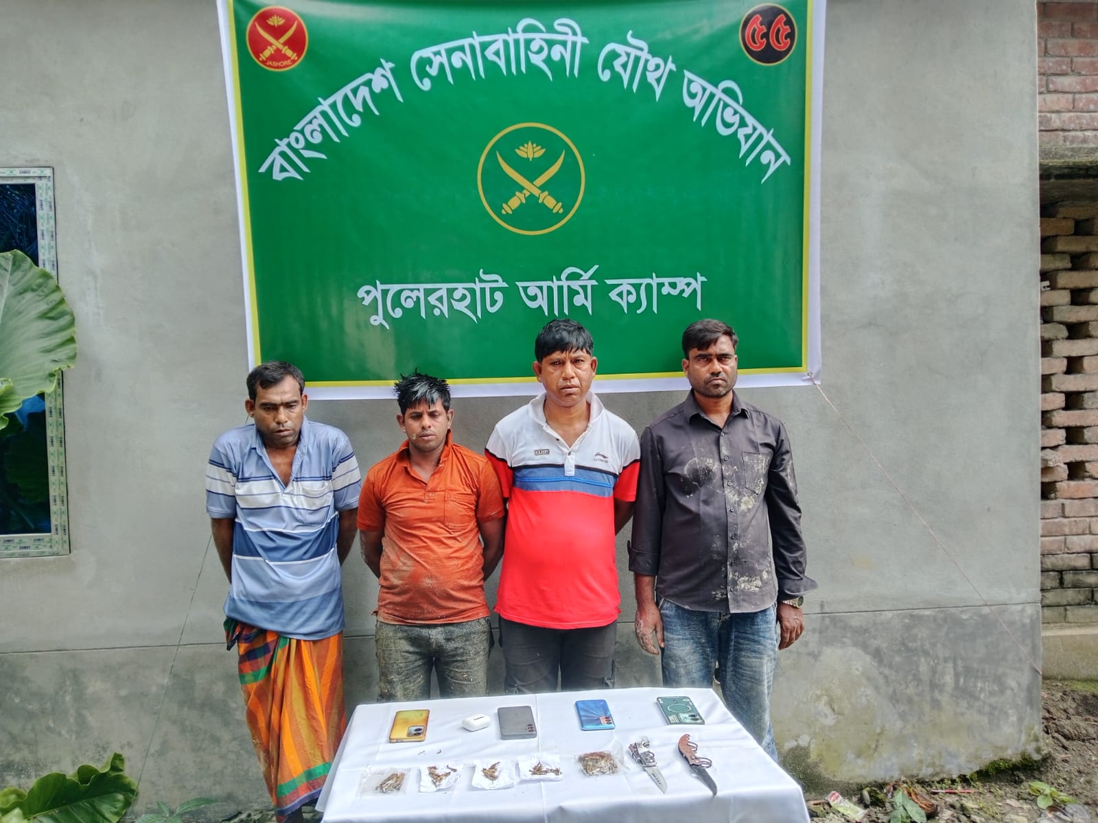 আটককৃতরা হলো, যশোর সদরের ইছালি গ্রামের আব্দুল লতিফের পুত্র মাসুদুজ্জামান সুইট (৫০), বাঘারপাড়া থানাধীন জয়নগর গ্রামের শওকত বিশ্বাসের পুত্র রিপন, নলডাঙ্গা গ্রামের মৃতঃ আকবর মোল্ল্যার পুত্র শাহিনুর রহমান (৪৪), কোতয়ালী ধানাধীন সাড়ংডাঙ্গা গ্রামের মিজান বিশ্বাসের পুত্র ফিরোজ।