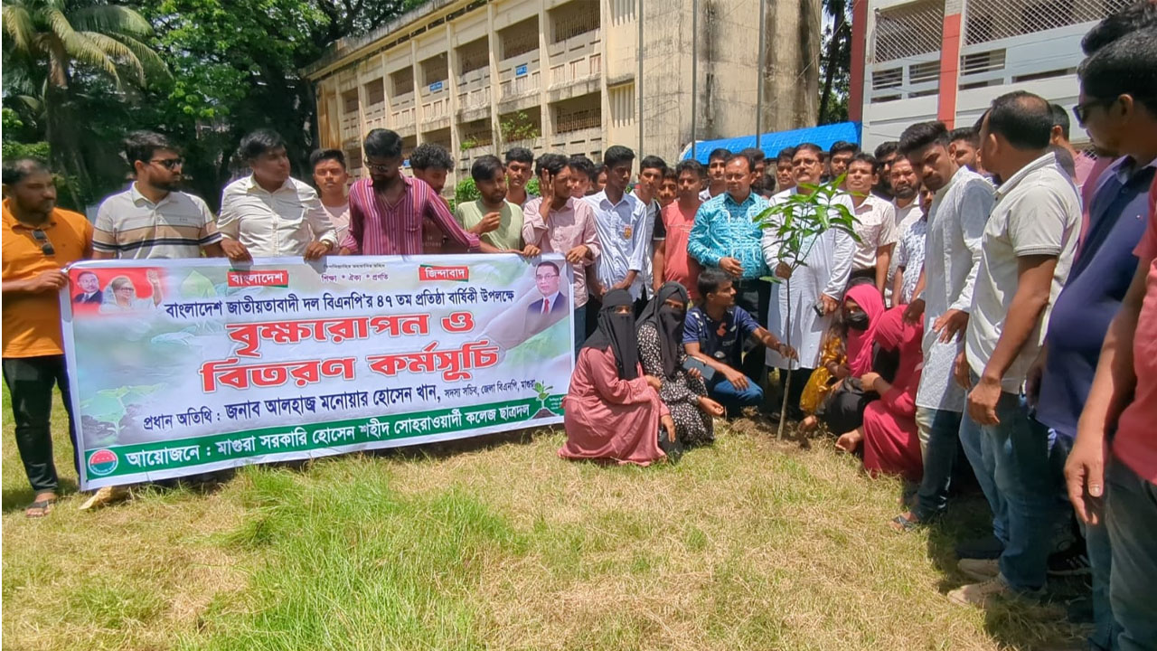 মাগুরায় বিএনপির ৪৭ তম প্রতিষ্ঠা বার্ষিকী উপলক্ষে মাগুরা সরকারী হোসেন শহীদ সোহরাওয়ার্দী কলেজ ছাত্রদলের পক্ষ থেকে বৃক্ষরোপন ও বিতরণ কর্মসূচি অনুষ্ঠিত হয়েছে।