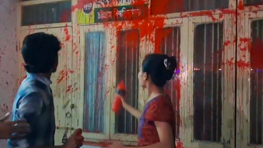 শিক্ষার্থীদের উপর স্থানীয়দের হামলার ঘটনায় চট্টগ্রাম বিশ্ববিদ্যালয়ের (চবি) প্রক্টরিয়াল বডির পদত্যাগসহ সাত দফা দাবিতে মশাল মিছিল ও প্রক্টর অফিসের সামনে লাল রং ছিটিয়ে প্রতিবাদ জানান চবি শিক্ষার্থীরা। ‘অধিকার সচেতন শিক্ষার্থীবৃন্দ’র ব্যানারে আয়োজিত এ কর্মসূচিতে গণতান্ত্রিক ছাত্র কাউন্সিল, বিপ্লবী ছাত্র মৈত্রী, পাহাড়ি ছাত্র পরিষদ, নারী অঙ্গনের নেতা-কর্মী ও বিভিন্ন বিভাগের শিক্ষার্থীরা অংশ নেন।