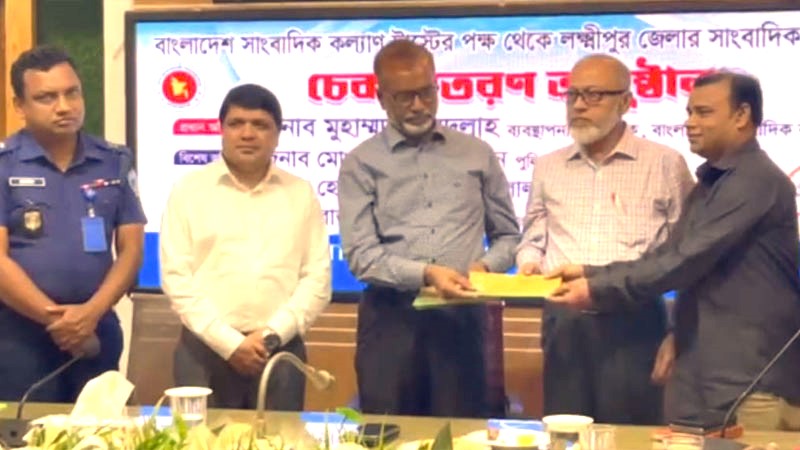 আজ ১০ সেপ্টেম্বর বুধবার দুপুরে লক্ষ্মীপুরে জেলার সাংবাদিকদের মাঝে উপহারের চেক বিতরণ অনুষ্ঠানে বাংলাদেশ সাংবাদিক কল্যাণ ট্রাস্টের ব্যবস্থাপনা পরিচালক এম আব্দুল্লাহ এ কথা বলেন। লক্ষ্মীপুর জেলা প্রশাসক কার্যালয়ের হলরুমে বাংলাদেশ সাংবাদিক কল্যাণ ট্রাস্টের পক্ষ থেকে এ অনুষ্ঠানের আয়োজন করা হয়। অনুষ্ঠানে জেলায় কর্মরত ২৩ জন ও ফেনী জেলার একজন সাংবাদিককে অনুদানের চেক প্রদান করা হয়।