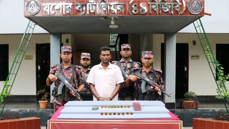 এর ভিত্তিতে যশোর ৪৯ বিজিবির একটি দল নড়াইল-যশোর মহাসড়কের দারাজহাট এলাকায় অবস্থান করে।এসময় ওই পাচারকারীকে হাসান ফিলিং স্টেশনের সামনে থেকে আটক করে। পরে তার দেহ তল্লাশি করে কোমরে বিশেষ কায়দায় লুকিয়ে রাখা ১৭ টি স্বর্ণের বার পাওয়া যায়।