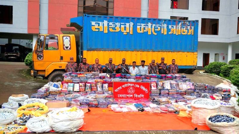 গোপন সংবাদের ভিত্তিতে সোমবার (২২ সেপ্টেম্বর) রাত সাড়ে ১১টায় অধিনায়ক লেঃ কর্নেল সাইফুল্লাহ্ সিদ্দিকীর নিদের্শনায় বেনাপোল বিওপি হতে অভিযান পরিচালিত হয়। বেনাপোল ভবের বেড় ট্রাক টার্মিনাল এর সামনের রাস্তায় ‘মাগুরা কার্গো সার্ভিস’-এর ট্রাক তল্লাশী করে অবৈধভাবে আনা ১,৪৭৬টি ভারতীয় শাড়ি, ২১৫টি থ্রি-পিস, ২টি মোটর সাইকেলের টায়ার, ১০,৬৯৩টি বিভিন্ন প্রকার ঔষধ, ১টি কার্গো ট্রাক এবং ৭৪,৪৫৫টি বিভিন্ন প্রকার কসমেটিক্স সামগ্রীপাওয়া যায়। এসবের বৈধ কাগজপত্র না থাকায় তাদের জব্দ করা হয়।