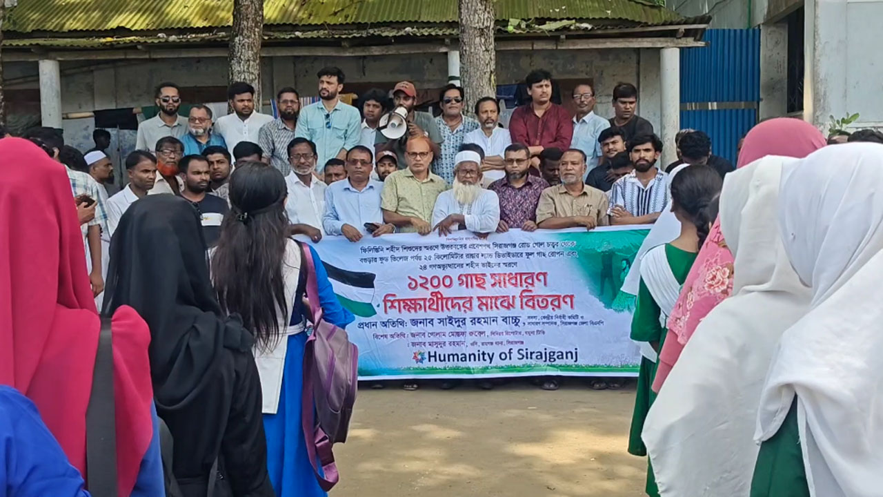 সিরাজগঞ্জে জুলাই ২৪ গণঅভ্যুত্থানে নিহত ১২০০ শহীদের স্মরণে দিনব্যাপী ১২০০ গাছ রোপন করেছে হিউম্যানিটি অফ সিরাজগঞ্জ।