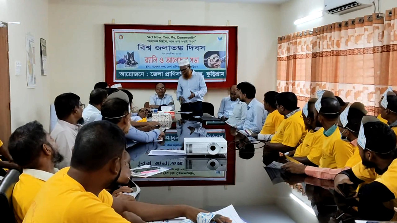 ‘জলাতঙ্ক নির্মূলে, কাজ করি সবাই মিলে’ স্লোগানে কুড়িগ্রেমে বিশ্ব জলাতঙ্ক দিবস পালন করা হয়েছে। জলাতঙ্ক নির্মূলে অগ্রগতি তুলে ধরা এবং জলাতঙ্ক প্রতিরোধে মানুষের মাঝে সচেতনতা বৃদ্ধির লক্ষ্যে নানা কর্মসূচির মাধ্যমে দিবসটি পালিত হয়।