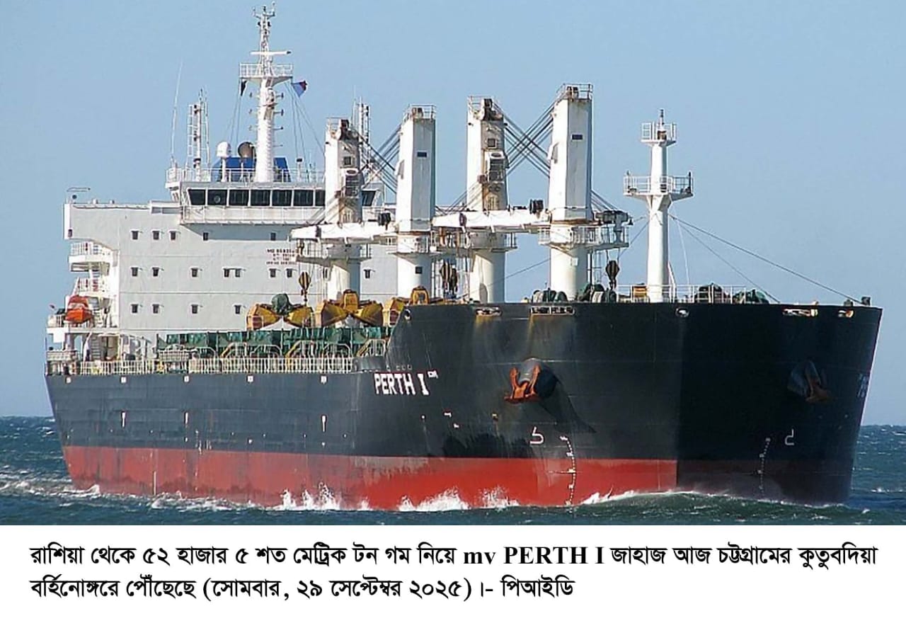 রাশিয়া থেকে আমদানিকৃত ৫২ হাজার ৫ শত টন গম নিয়ে ‘এমভি পারথ’ জাহাজ কুতুবদিয়া বর্হিনোঙ্গরে নোঙর করেছে। সরকারি সূত্রে জানা যায়, গত ৭ জুলাই ২০২৫ তারিখে এ সংক্রান্ত নগদ ক্রয় চুক্তি সম্পাদিত হয়েছিল। সেই চুক্তির অংশ হিসেবে এই চালান আজ দেশে পৌঁছেছে।