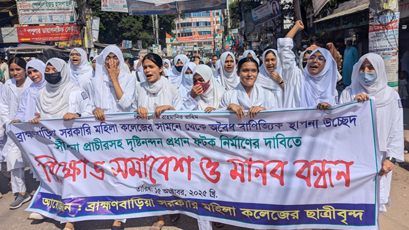 বুধবার (১৫ অক্টোবর) সকালে ব্রাহ্মণবাড়িয়া সরকারি মহিলা কলেজের শিক্ষার্থীদের আয়োজনে কলেজের মূল ফটকের সামনে এ কর্মসূচি পালিত হয়।