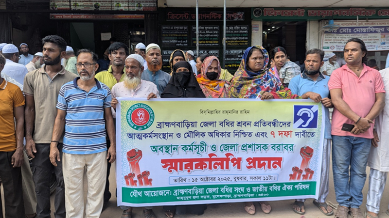 ব্রাহ্মণবাড়িয়া জেলা বধির সংঘের সাধারণ সম্পাদক মো. জামালের স্বাক্ষরিত স্মারকলিপিতে বলা হয়, দেশের প্রায় দেড় কোটি প্রতিবন্ধী নাগরিক ন্যূনতম সুযোগ-সুবিধা থেকে বঞ্চিত রয়েছেন। তাদের জন্য কোটাভিত্তিক চাকরি নিশ্চিতকরণ, সরকারি-বেসরকারি খাতে কর্মসংস্থানের সুযোগ বৃদ্ধি, প্রতিবন্ধীবান্ধব অবকাঠামো নির্মাণ এবং চিকিৎসা ও শিক্ষার ক্ষেত্রে বিশেষ সহায়তার দাবি তোলা হয়। এছাড়াও ৭দফা দাবি বাস্তবায়নের প্রশাসনের প্রতি আহ্বান জানায়।