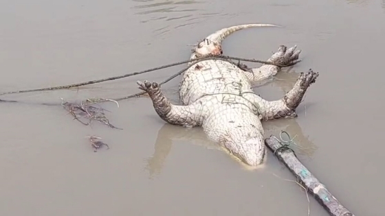 মোংলা শহরতলীর নারকেলতলা এলাকায় নদী থেকে গলায় ফাঁস দেওয়া একটি মৃত কুমির ভেসে এসেছে। আজ রোববার সকালে কুমিরটি দেখতে পায় স্থানীয়রা। কুমিরটির শরীর থেকে একটি পা বিচ্ছিন্ন। প্রায় ১৫/১৬ বছর বয়সের ৯ ফুট দৈর্ঘ্যর পুরুষ প্রজাতির কুমিরটির দেহে আঘাতের কিছু চিহ্ন লক্ষ্য করা গেছে।