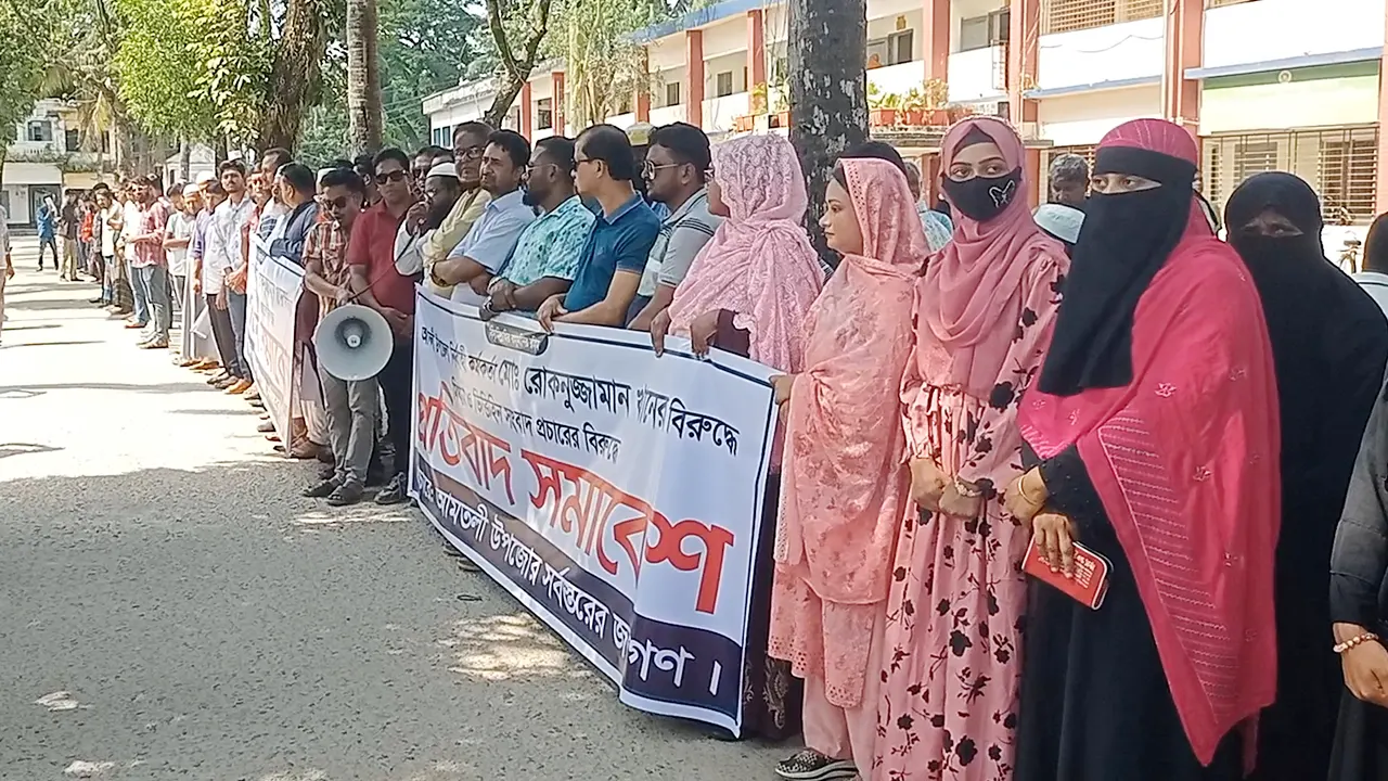 বরগুনার আমতলী উপজেলার নির্বাহী কর্মকর্তা (ইউএনও) ও পৌর প্রশাসক মো. রোকনুজ্জামান খানের বিরুদ্ধে মিথ্যা, বানোয়াট ও মনগড়া তথ্য দিয়ে অপপ্রচারের প্রতিবাদ জানিয়েছেন বিভিন্ন রাজনৈতিক দলের নেতারা। আজ বৃহস্পতিবার (২৩ অক্টোবর) সকাল সাড়ে ১১টায় আমতলী উপজেলা পরিষদ চত্বরে আয়োজিত এক মানববন্ধন কর্মসূচিতে এ প্রতিবাদ জানানো হয়।