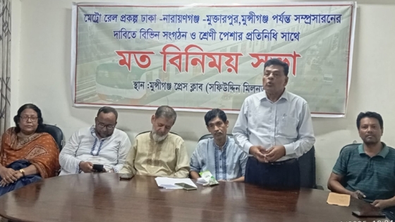 ঢাকা-নারায়ণগঞ্জ থেকে মুক্তারপুর হয়ে মুন্সীগঞ্জ পর্যন্ত মেট্রোরেল প্রকল্প সম্প্রসারণের দাবিতে শুক্রবার (২৪ অক্টোবর) মুন্সীগঞ্জ প্রেসক্লাবের সফিউদ্দিন মিলনায়তনে একটি বড় মতবিনিময় সভা অনুষ্ঠিত হয়েছে।