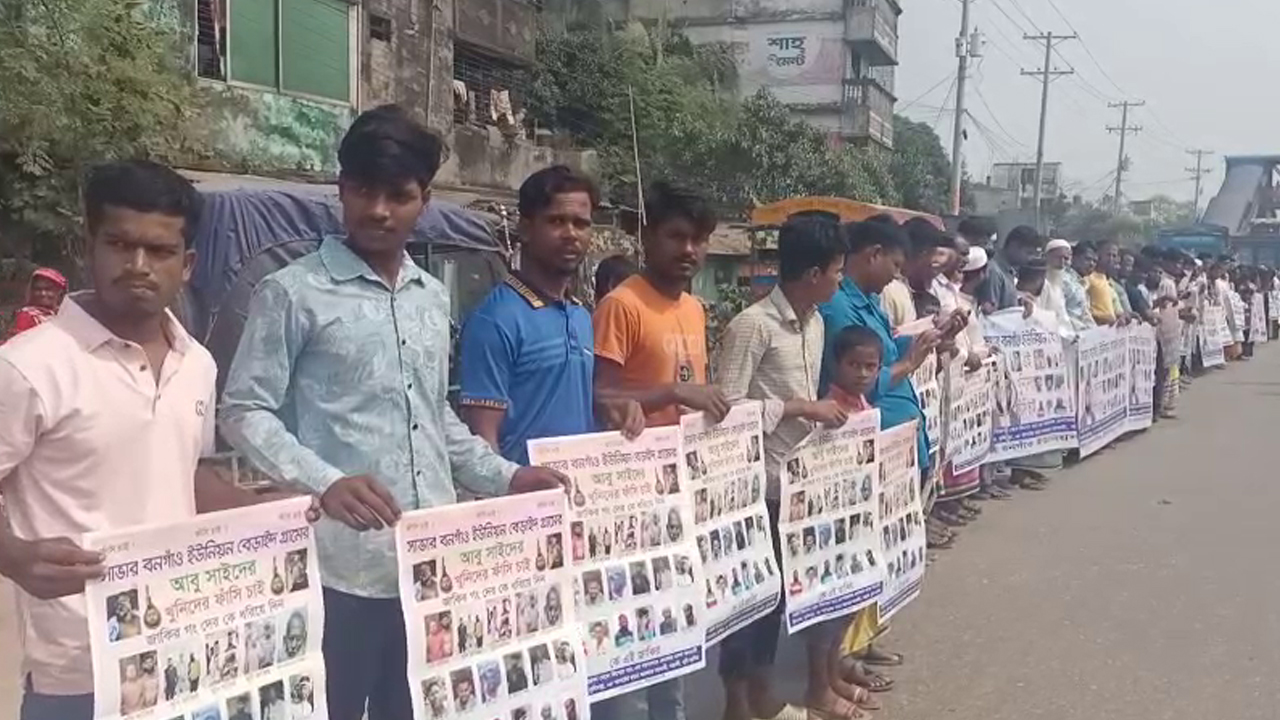 সাভারে বিএনপি নেতা আবু সাঈদ হত্যার প্রতিবাদ জানিয়েছেন এলাকাবাসী। আজ রোববার (২৬ অক্টোবর) দুপুরে ঢাকা-আরিচা মহাসড়কের বলিয়ারপুর এলাকার সড়ক অবরোধ করে ওই বিক্ষোভ ও মানববন্ধন করেন শত শত মানুষ। মহাসড়ক অবরোধ করে বিক্ষোভ ও মানববন্ধনে জাকির বাহিনীর গ্রেপ্তার ও বিচারের দাবি জানান তারা।