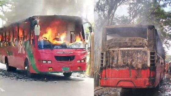 ব্রাহ্মণবাড়িয়া- ব -১১-০০০৪ বাসটি মুহূর্তেই দাউ দাউ করে আগুন জ্বলতে থাকে। উজিরপুর ফায়ার সার্ভিস ও সিভিল ডিফেন্স ইউনিট তাৎক্ষণিক ঘটনা স্থলে এসে আগুন নিয়ন্ত্রণে আনতে সক্ষম হয়।