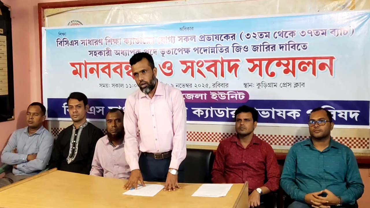 কুড়িগ্রামে বিসিএস সাধারণ শিক্ষা ক্যাডারের যোগ্য সকল প্রভাষকের সহকারী অধ্যাপক পদে পূর্বের মতো পদোন্নতির দাবিতে মানববন্ধন ও সংবাদ সম্মেলন অনুষ্ঠিত হয়েছে।