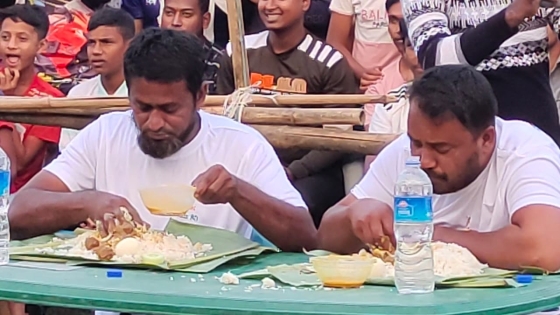 খেলার মাঠে আয়োজকরা প্রতিযোগীদের জন্য নির্ধারিত সময় দেন ১৫ মিনিট। এ সময়ের মধ্যে ভাত, গরুর মাংস, ডাল ও ডিম খেয়ে শেষ করতে হয়। ৯ জন প্রতিযোগীর মধ্যে সুলতান প্রথম, রাজিব দ্বিতীয় ও স্বাধীন তৃতীয় হন। নির্ধারিত সময়ের মধ্যেই তারা খাবার শেষ করে বিজয়ী হন।