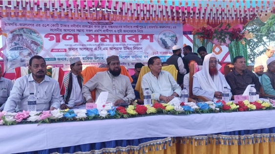 লক্ষ্মীপুরের রামগতি ও কমলনগর উপজেলায় মেঘনা নদীর তীর রক্ষায় ৩১শ’ কোটি টাকার বাঁধ প্রকল্প দ্রুত বাস্তবায়নের দাবিতে গণসমাবেশ করা হয়েছে। এতে বিএনপি-জামায়াতের সংসদ সদস্য প্রার্থিরা ঐক্যবদ্ধ কাজ করার প্রতিশ্রুতি দিয়েছে। রোববার (১৬ নভেম্বর) সন্ধ্যায় উপজেলার কাদিরপন্ডিতেরহাট বিদ্যালয় মাঠে এ গণ সমাবেশের আয়োজন করা হয়।