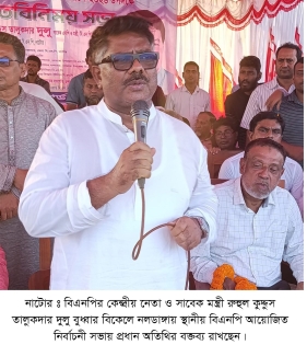আজ বুধবার বিকেলে নাটোরের নলডাঙ্গা উপজেলার খোলাবাড়িয়া জিরো পয়েন্টে স্থানীয় বিএনপি আয়োজিত নিবার্চনী সভায় প্রধান অতিথির বক্তব্যে দুলু এসব কথা বলেন।