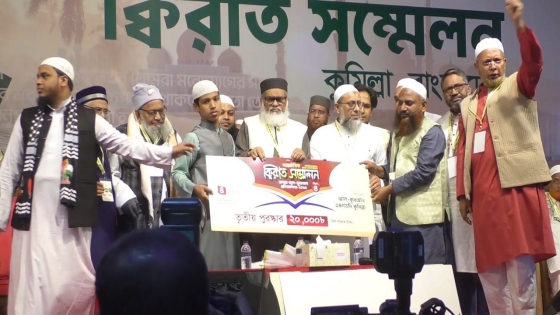অনুষ্ঠানের শেষ দিকে ক্বিরাত প্রতিযোগিতায় অংশগ্রহণকারীদের মাঝে পুরস্কার বিতরণ করা হয়।